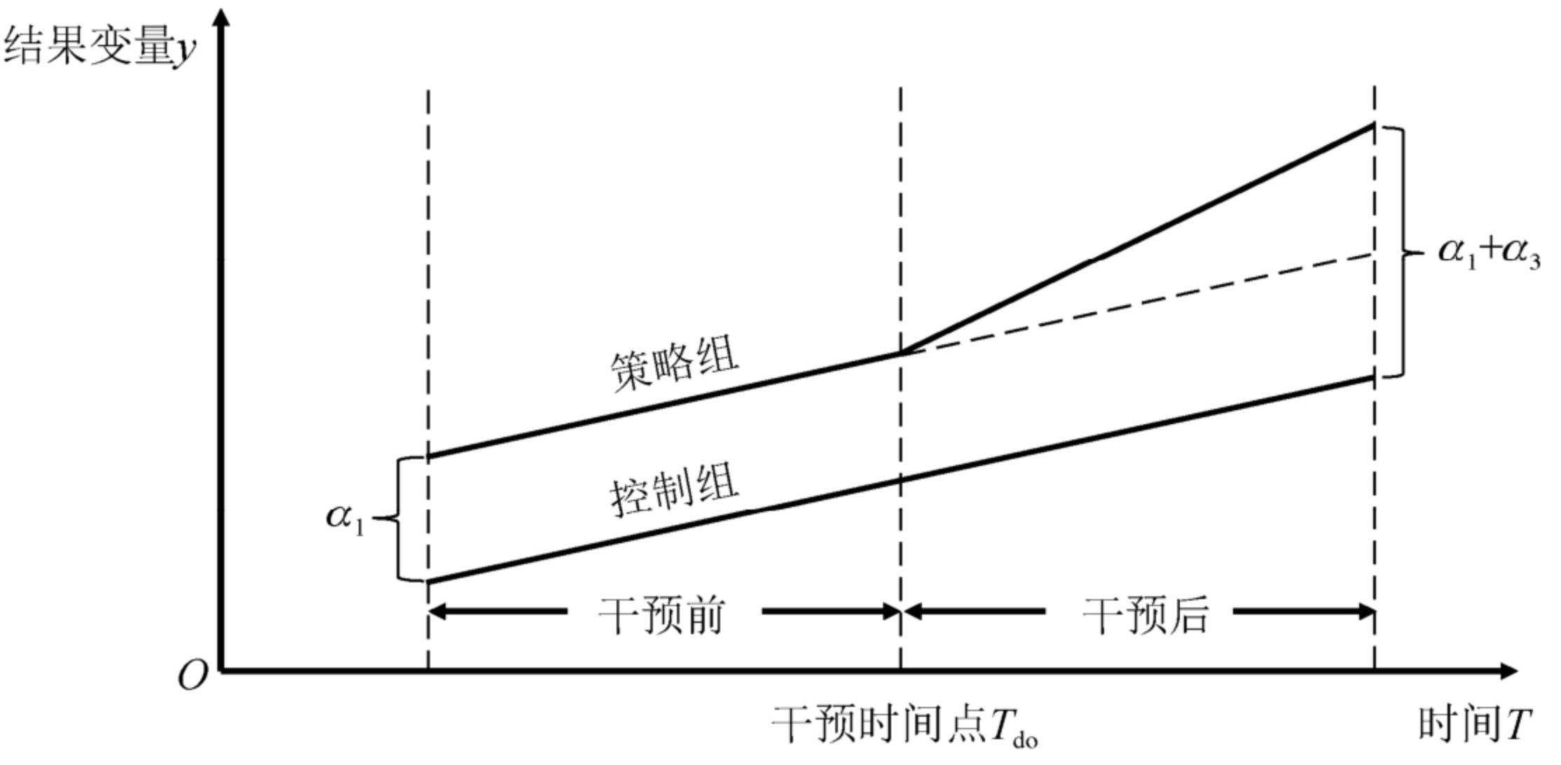 | 差分(组间差异) | \(\alpha_1\) | \(\alpha_1+\alpha_3\) | \(\alpha_3\)(策略效应) |
