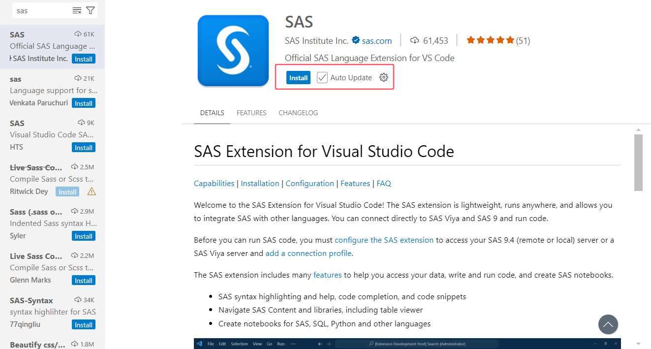 更多关于 SAS 与 vscode 的信息可以访问:[SAS Extension for Visual Studio Code](https://developer.sas.com/programming/vs_code_extension)