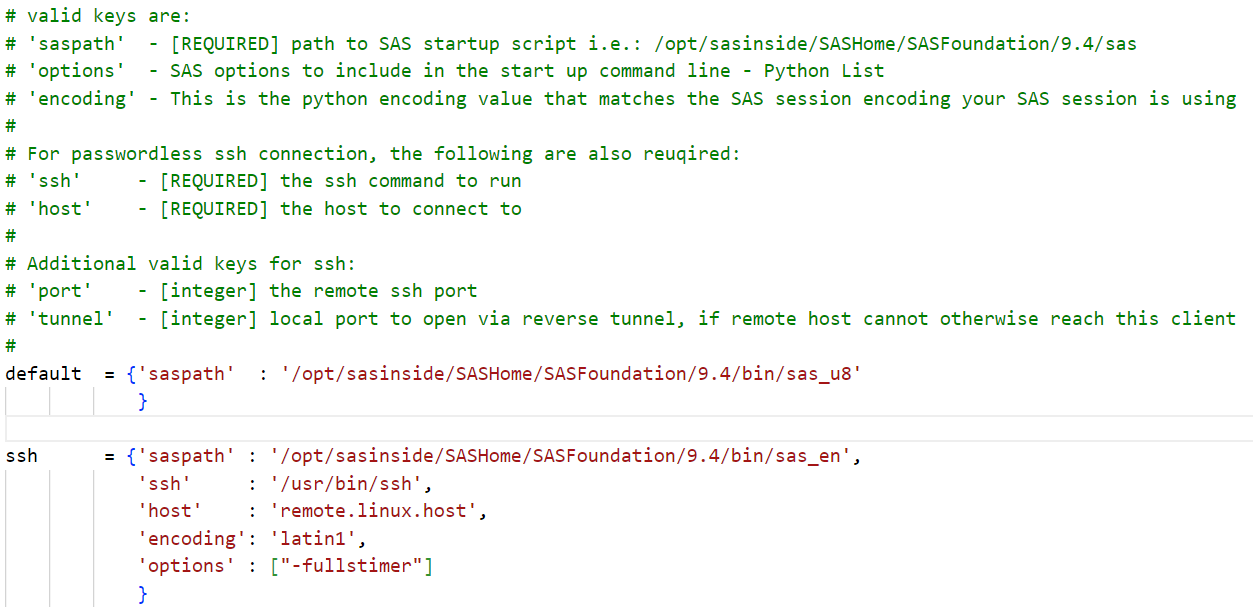 如果需要配置连接远程的SAS Server,如连接远程Windows机器的SAS Server,需在sascfg.py中做以下修改: