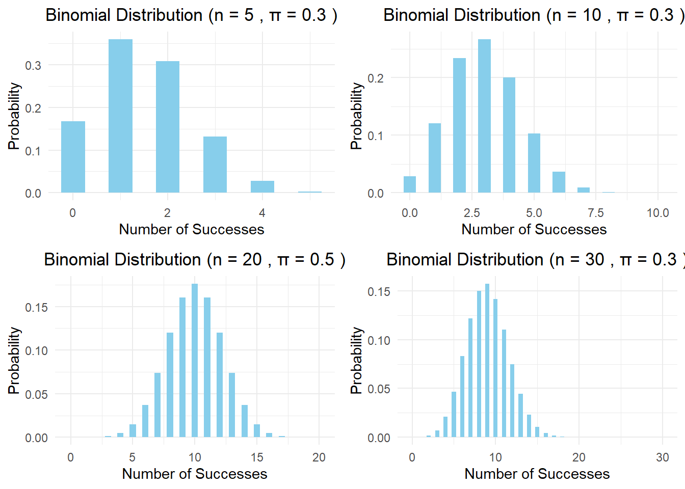 title <- paste("Binomial Distribution (n =", n, ", π =", pi, ")")