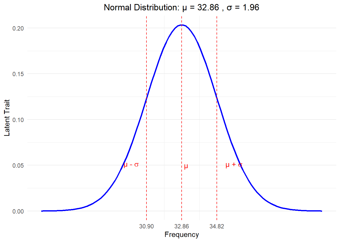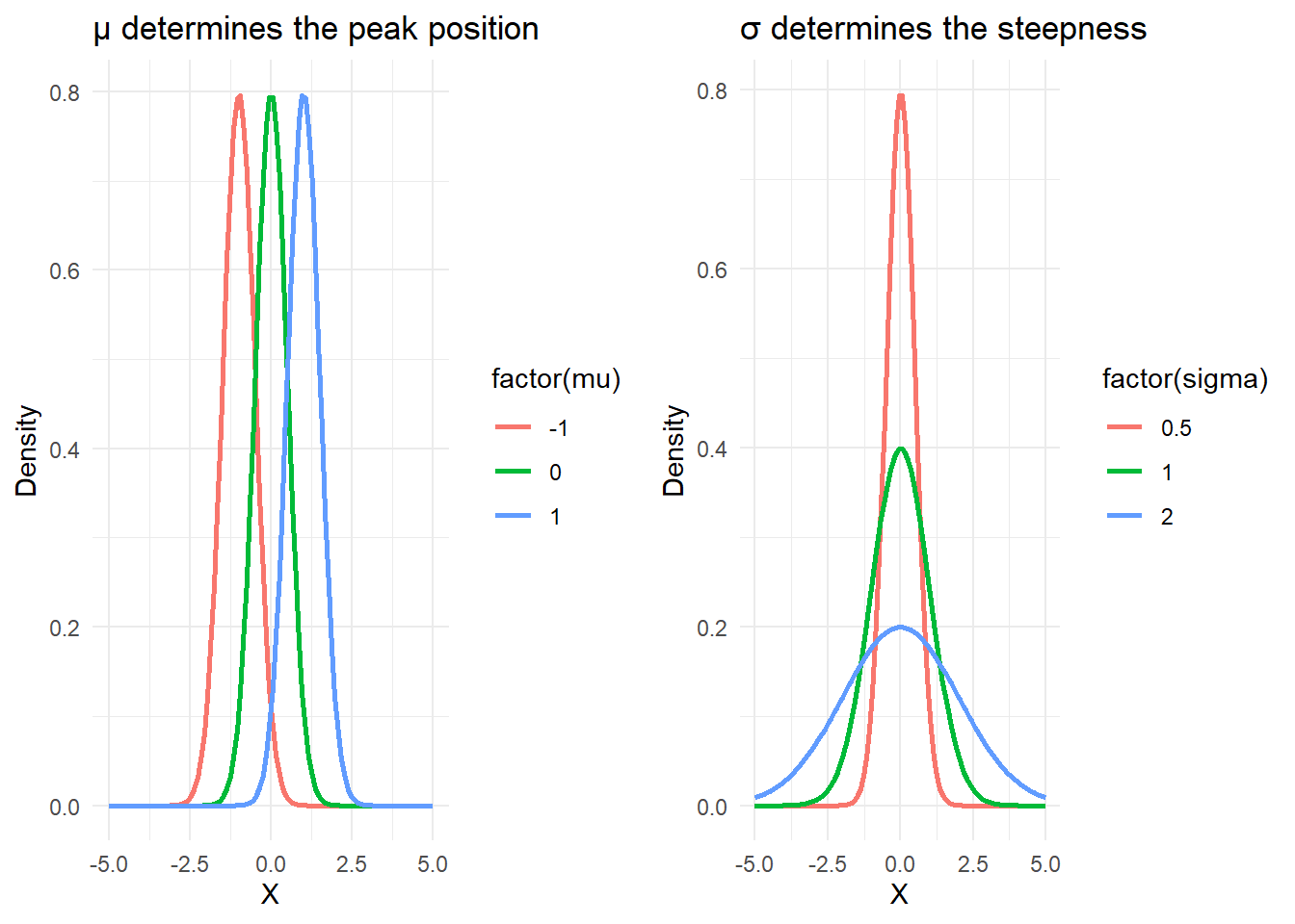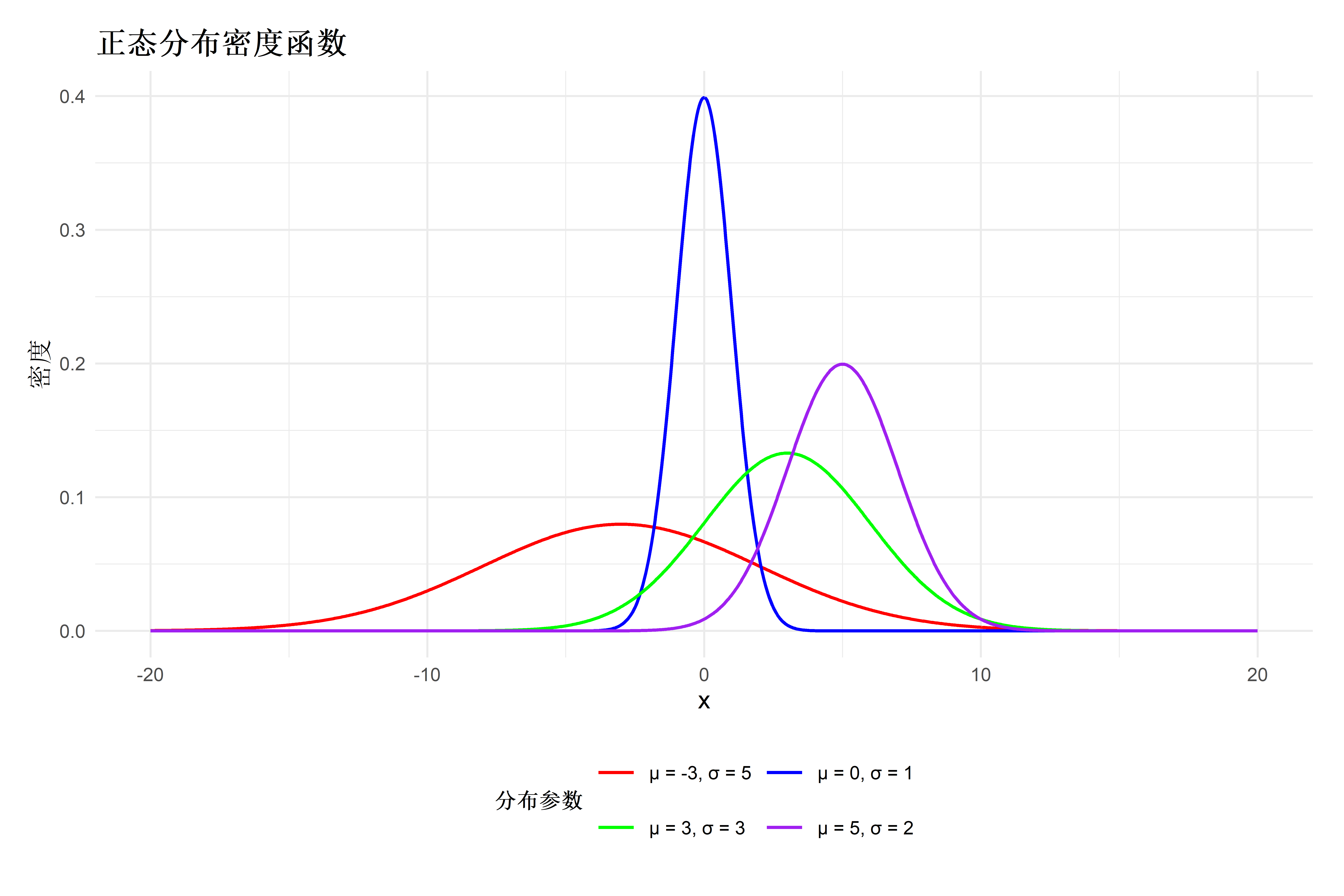 labs(title = paste("Normal Distribution: μ =", mu, ", σ =", sigma),
