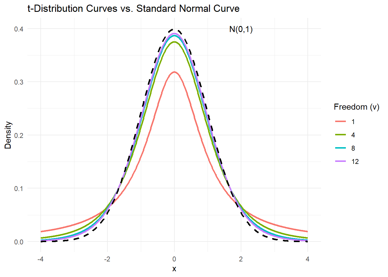 t_dist_data$density <- dt(t_dist_data$x, df = t_dist_data$df)